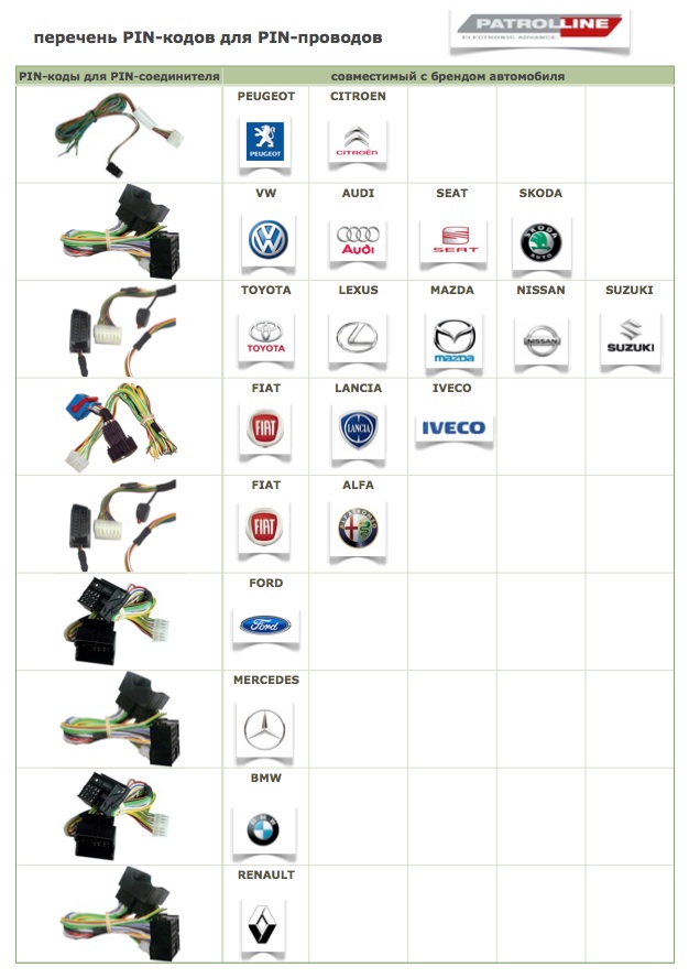 Благодаря уникальному решению от PATROLLINE противоугонные сигнализации с CAN-шинами устанавливаются уже в 20 автомобильных брендах со специальным PIN-кодом для PIN-соединителя. Инсталляция осуществляется легко и быстро. Перечень PIN-кодов для PIN-соединителей постоянно дополняется.